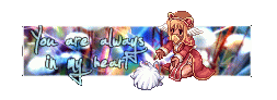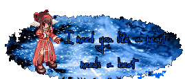 Sweet!This one is very cute,although most of the other sigs could be better in my opinion. The background often looks pixely,not meant to look like that,I know,much work and stuff,but I'm just not into that too much.I Also dislike the font used..looks weird in the 'everyday in paradise'~sig but thats just how I see things. Anyways this one turned out pretty good.It's cute. Like it.