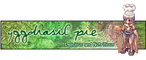 Well~ I haven't uploaded anything for a long time, so here's a signature I made for a forum of the server I play on. My username is Yggdrasil Pie there so, basically... Yggdrasil Pie for all!